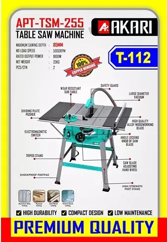 Akari 255mm 2500 watt Table saw, 5300 RPM (APT-TSM-255)